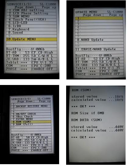Vstavljaem karty v dohlij zaurus, otkluchaem ego ot batarejki i bloka pitanija. Nazhimaem i derzhim C i D knopki. Podkluchaem block pitanija. Batarejku ne vstavljaem. Dolzhnizagoretsja svetodiod zarjadki i pochti. Posle secund 30, zelenij dolzhen pogasnut. otsoedinjaem BP, vstavljaem batarejku, podsoedinjaem BP. Zmem i derzhim OK i nazhimaem On/Off. Dolzhno pojavitsja japonskoe menu apdejta. Esli batarejka dohlaja, zhdem minut 10 poka zarjaditsja i probuem vojti v menu opjat.