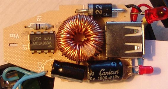7. Преобразователь Вход 5-12в выход 5В 2А с возможностью подключения КПК на прямую и через переходник «8», ГПС, два разных телефона. Данное устройство можно запитать от аккумуляторов «2», от бортовой сети через переходник «9». Работающем на повышающем/понижающем преобразователе МС 34063 с транзистором и мосфетом, выдранном из авто-адаптера к ГПС в виду самого высокого КПД (аж 89% при токе потребления 0,4А) из мною тестированных.