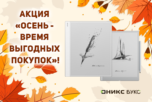 Акция «Осень - время выгодных покупок»![среда, 24 сентября 2025 г, 09:46]Компания МакЦентр, эксклюзивный дистрибьютор продукции ONYX International, рада сообщить о запуске акции «Осень - время выгодных покупок». В период с 24 сентября по 8 октября можно приобрести две популярные модели ридеров со скидкой: