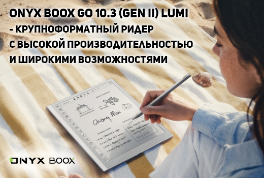 ONYX BOOX Go 10.3 (Gen II) Lumi - крупноформатный ридер с высокой производительностью и широкими возможностями[вторник, 31 марта 2026 г, 10:42]Компания МакЦентр, эксклюзивный дистрибьютор продукции ONYX International Inc, рада сообщить о расширении линейки широкоформатных ридеров новой моделью с подсветкой и двойным сенсорным управлением. В продажу поступил ридер ONYX BOOX Go 10.3 (Gen II) Lumi — высокопроизводительный 10,3-дюймовый ридер с экраном высокого разрешения с подсветкой и двойным сенсорным управлением.