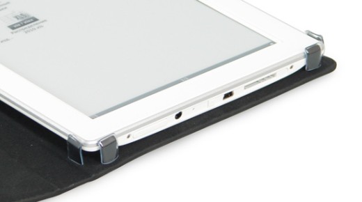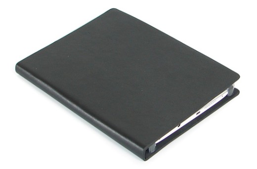 Чехол-обложка выполнен из искусственной кожи и имеет жесткую основу, защищающую букридер от случайных ударов. Для закрепления устройства чехол имеет металлические клипсы. Несмотря на кажущуюся ненадежность, такое крепление оказалось очень прочным, и для того, чтобы вытащить букридер приходится прикладывать усилие. Что же касается случайного выпадения устройства из чехла, то при правильном закреплении оно исключено.